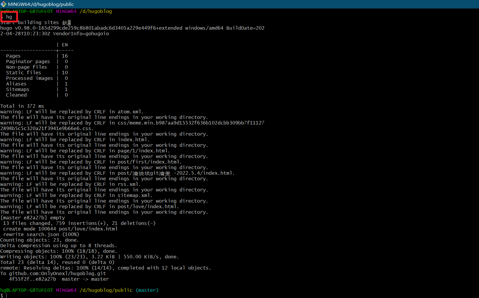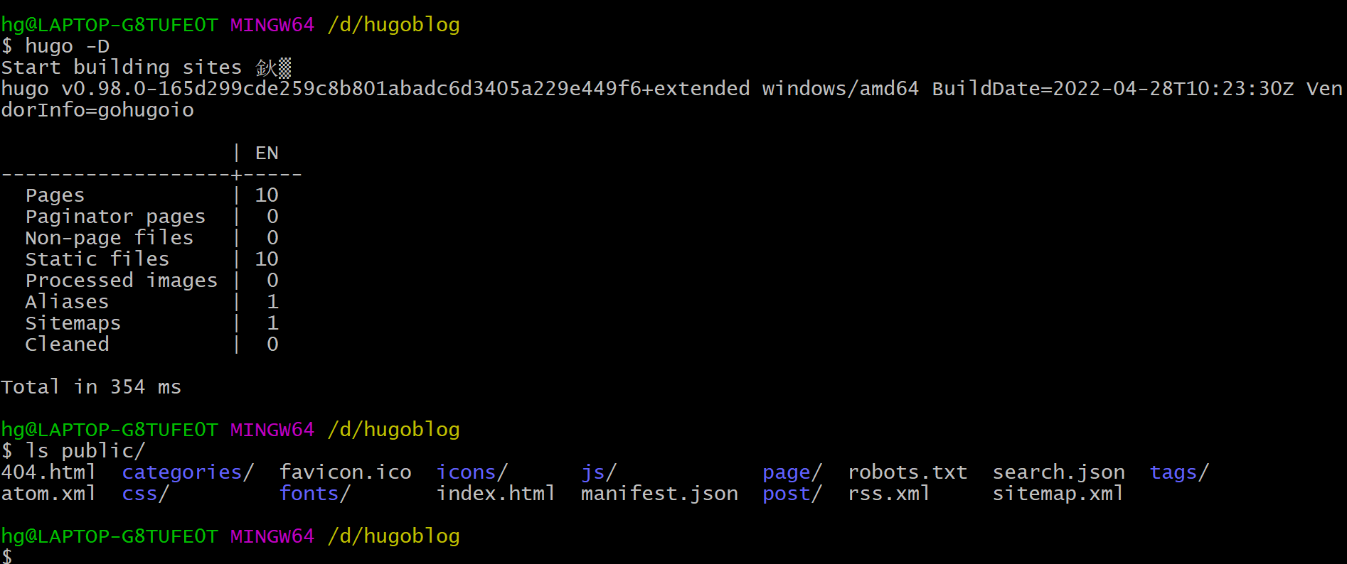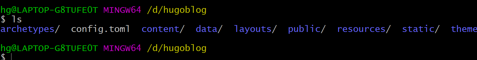 hg@LAPTOP-G8TUFE0T MINGW64 /d/hugoblog