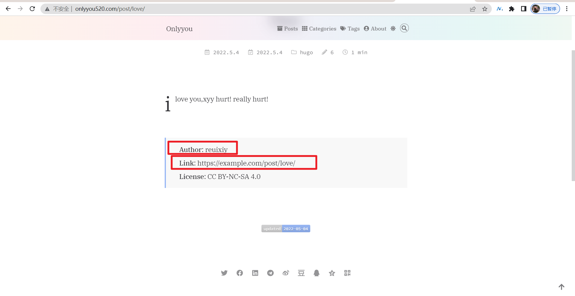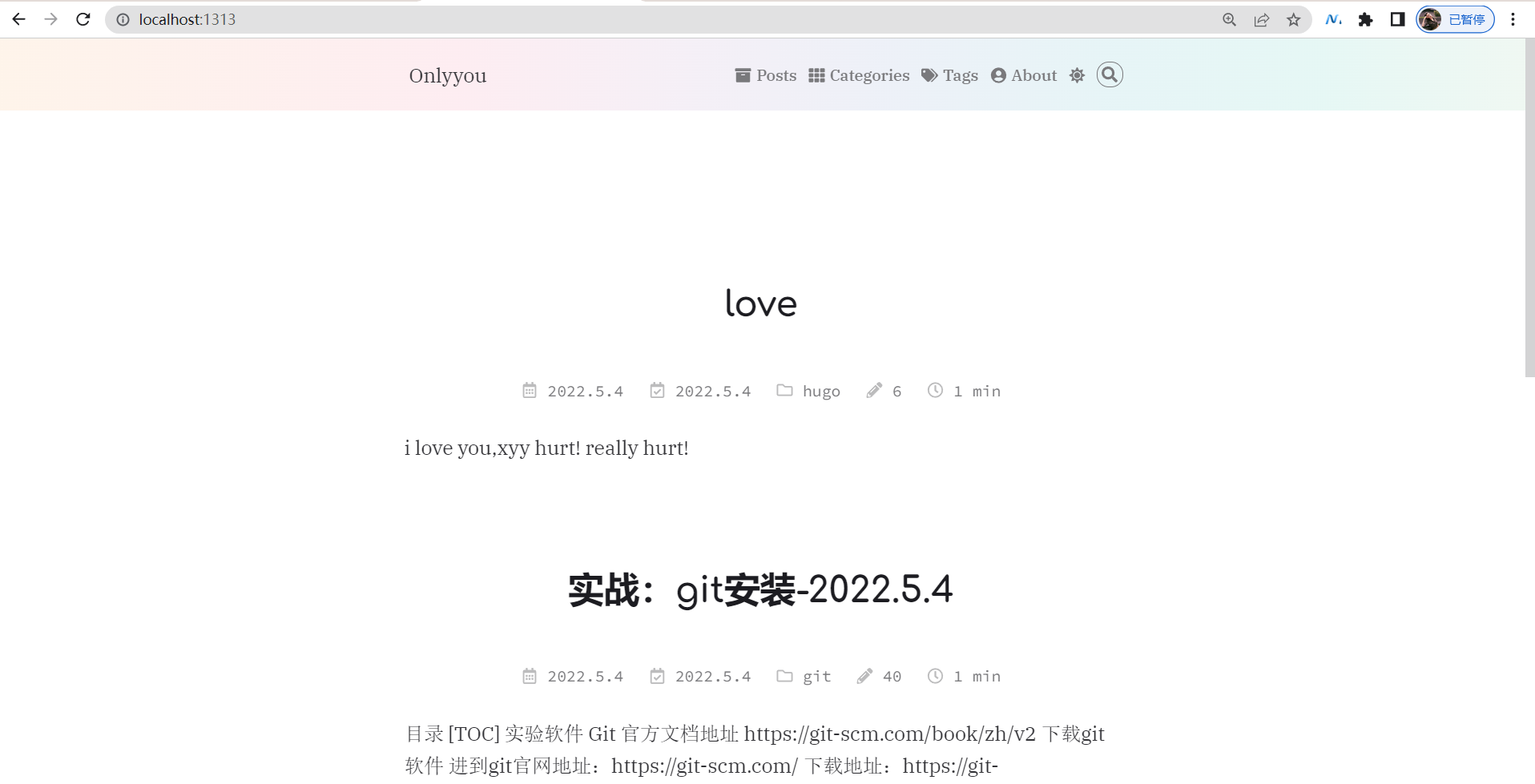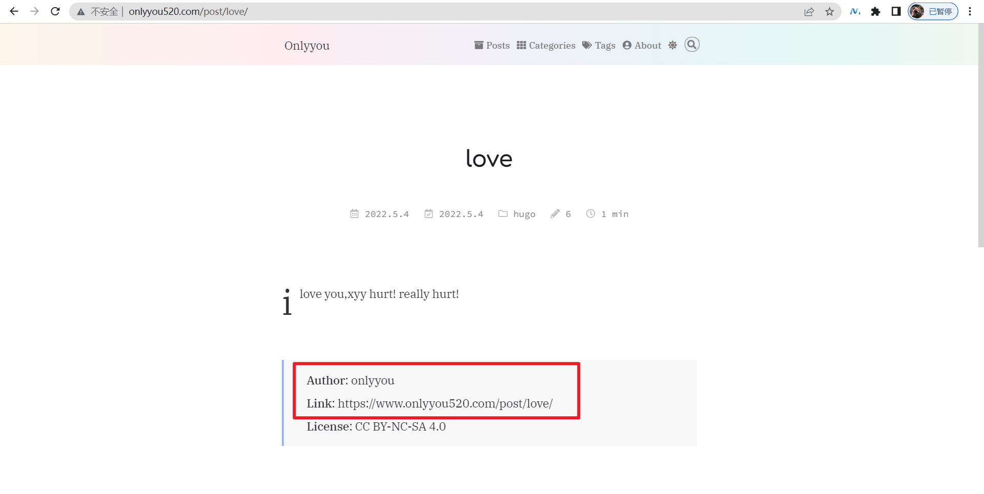 $ echo "i love you,xyy hurt!" >> content/post/first.md