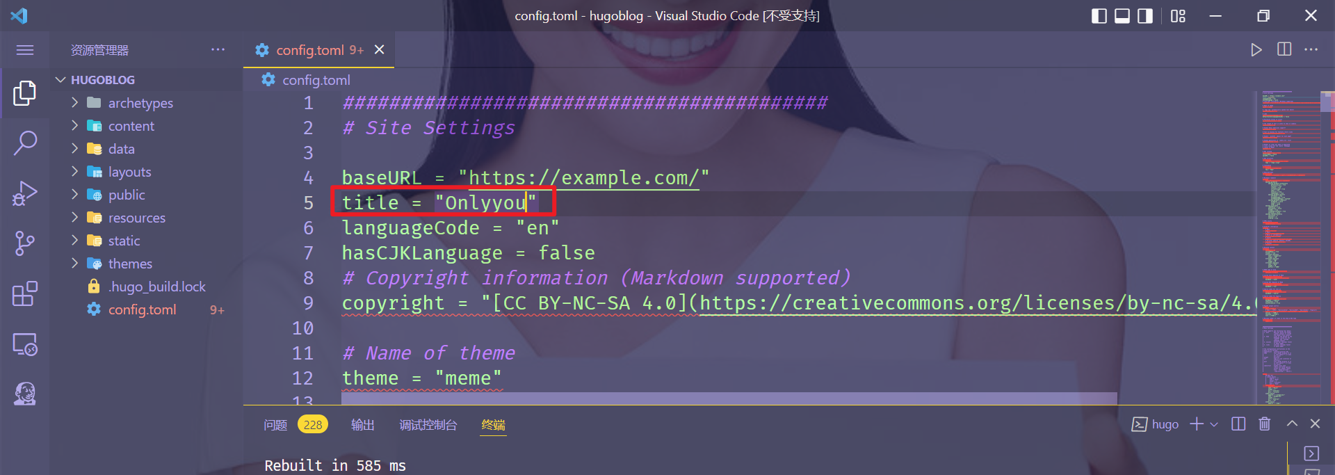 我们通过hugo server -D本地生成网站预览. 他会监控页面的更改, 并刷新页面.