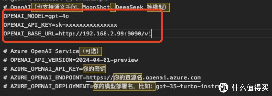🔻 修改 env 文件的内容,把上篇文章中搭建好URL地址和MODEL填入。
