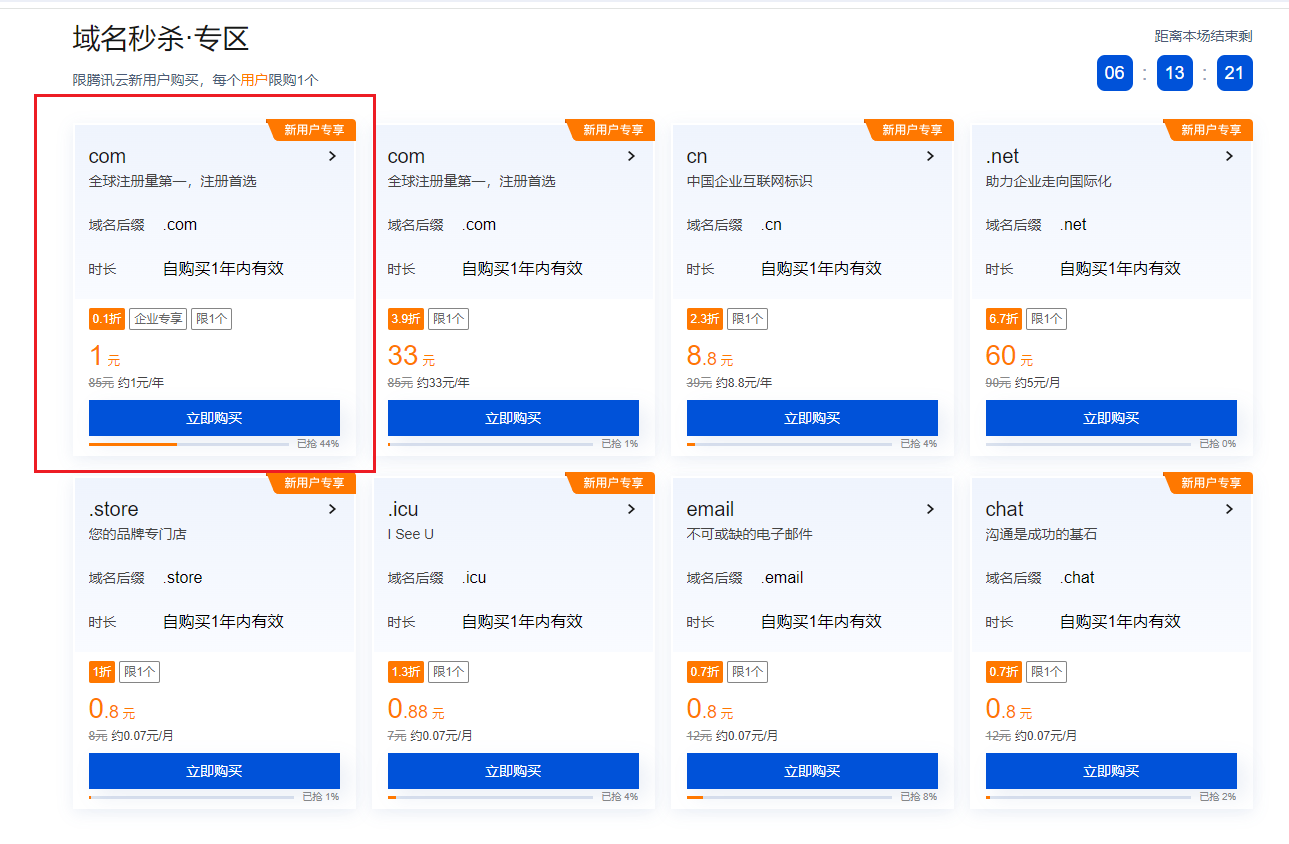 注意: 此方案需要有域名才行,后续需要给域名绑定到 Cloudflare,建议直接在腾讯云-域名注册上面搞一个,选最便宜的就行。