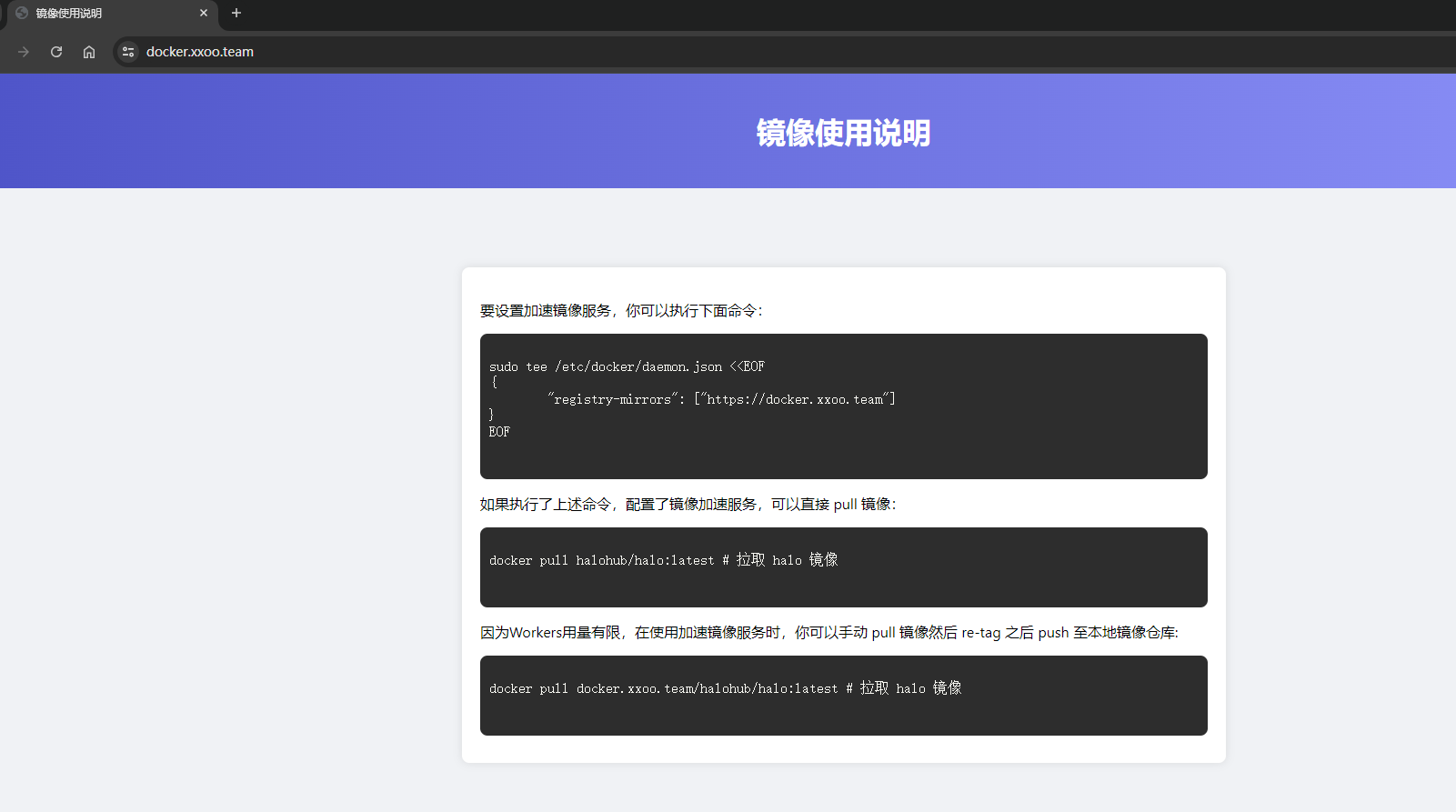docker pull docker.xxoo.team/halohub/halo:latest # 拉取 halo 镜像