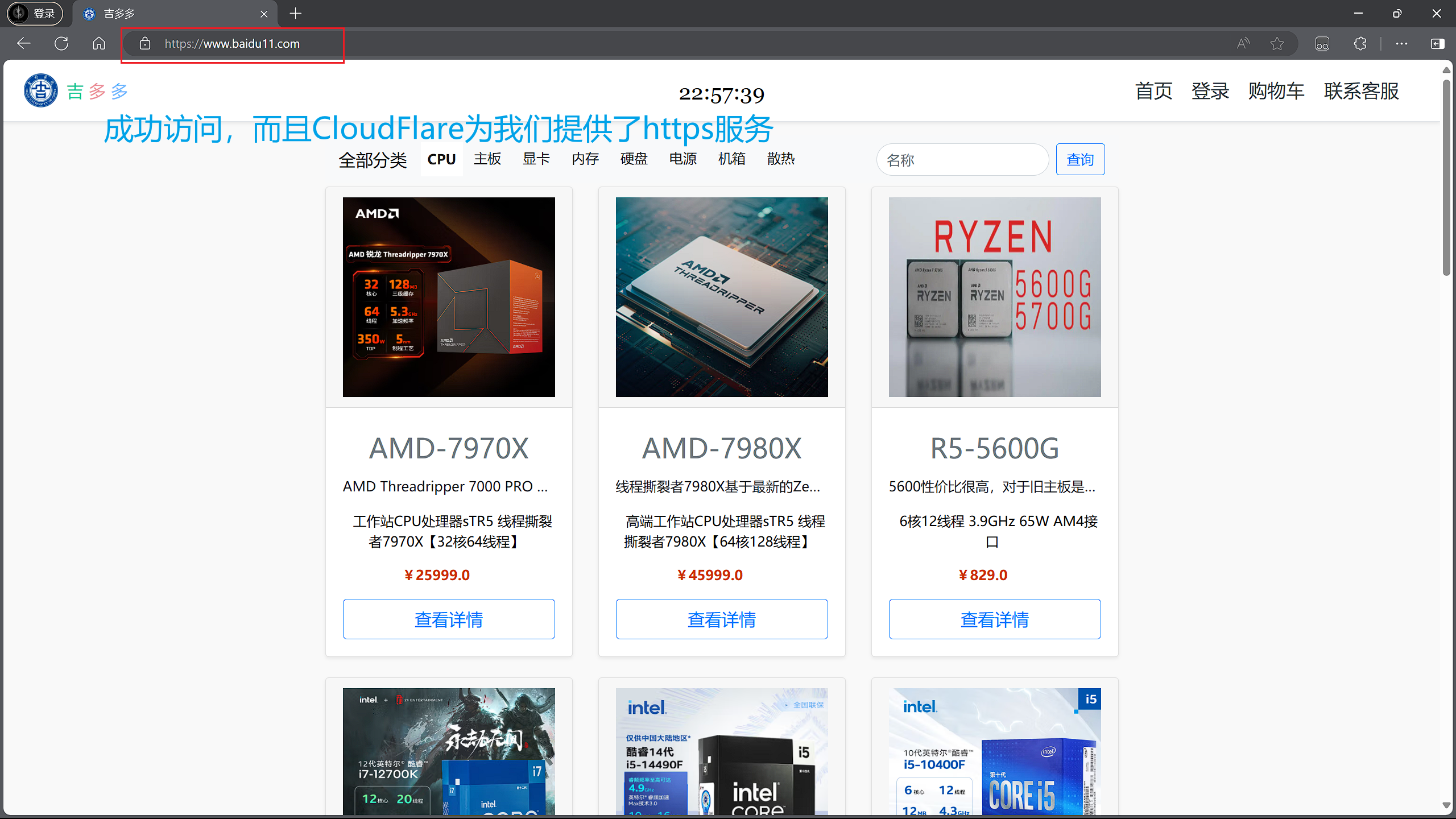 - CloudFlare免费提供内网穿透服务和HTTPS服务,但是需要拥有一个属于自己的域名;