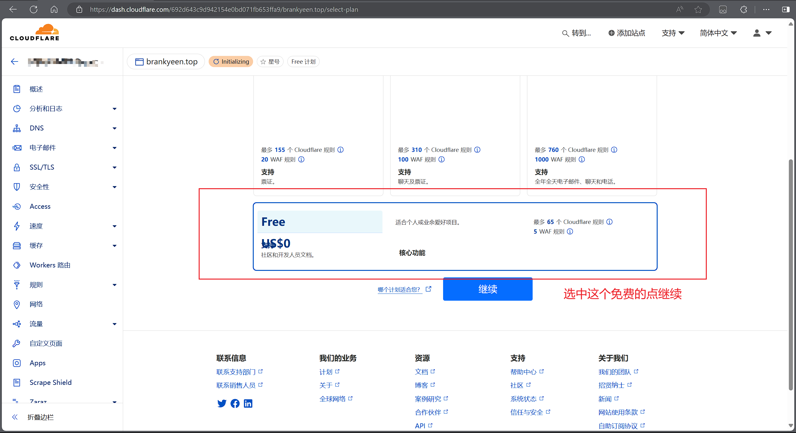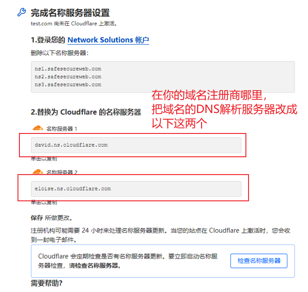 - 买域名:购买一个域名,并将其DNS服务器设置为CloudFlare提供的DNS服务器(即将域名托管到CloudFlare);