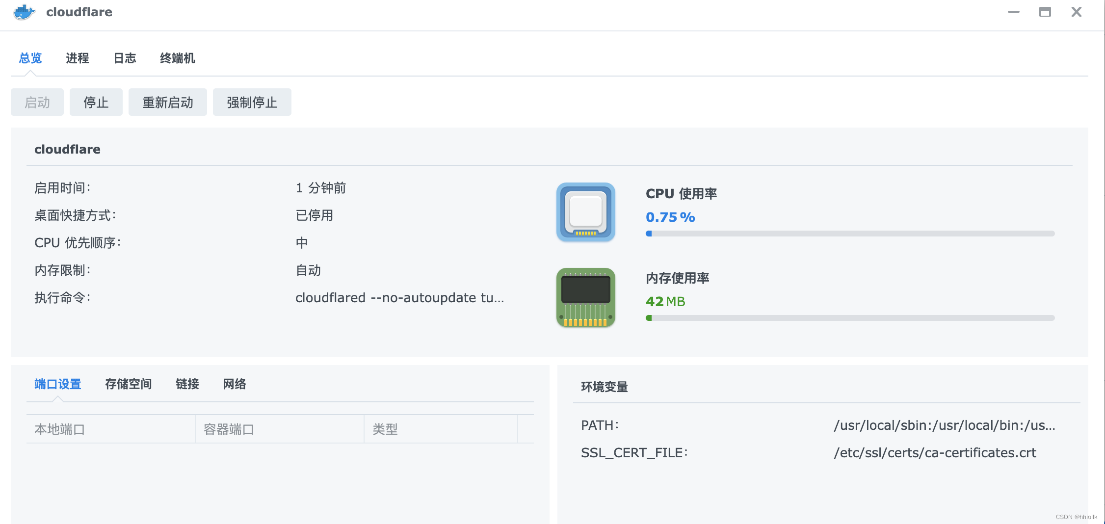 然后启动docker,可以看到cloudflare已经是正常使用了,直接访问域名可以访问到内网地址
