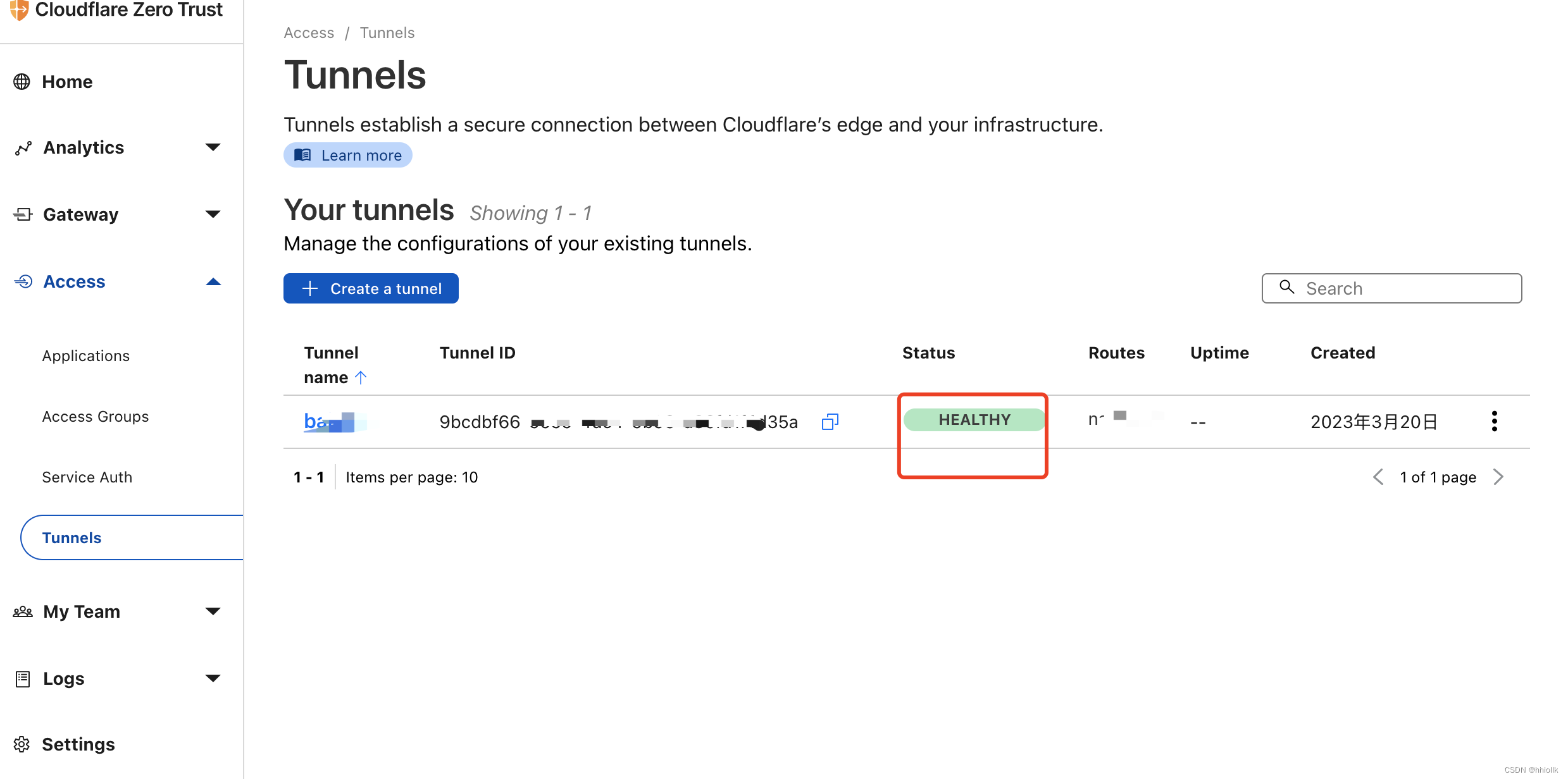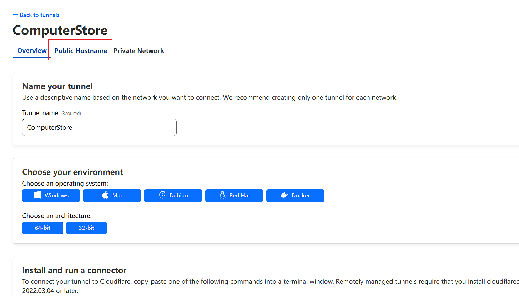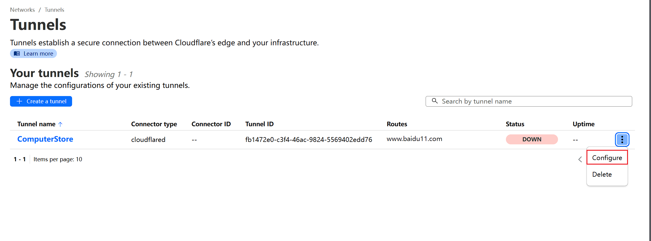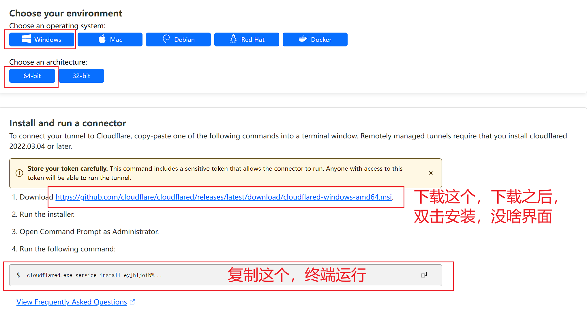 - 建隧道:在CloudFlare上创建一个隧道(CloudFlare本质上给我们提供了一个公网IP地址和服务器,但是需要配置隧道连接);