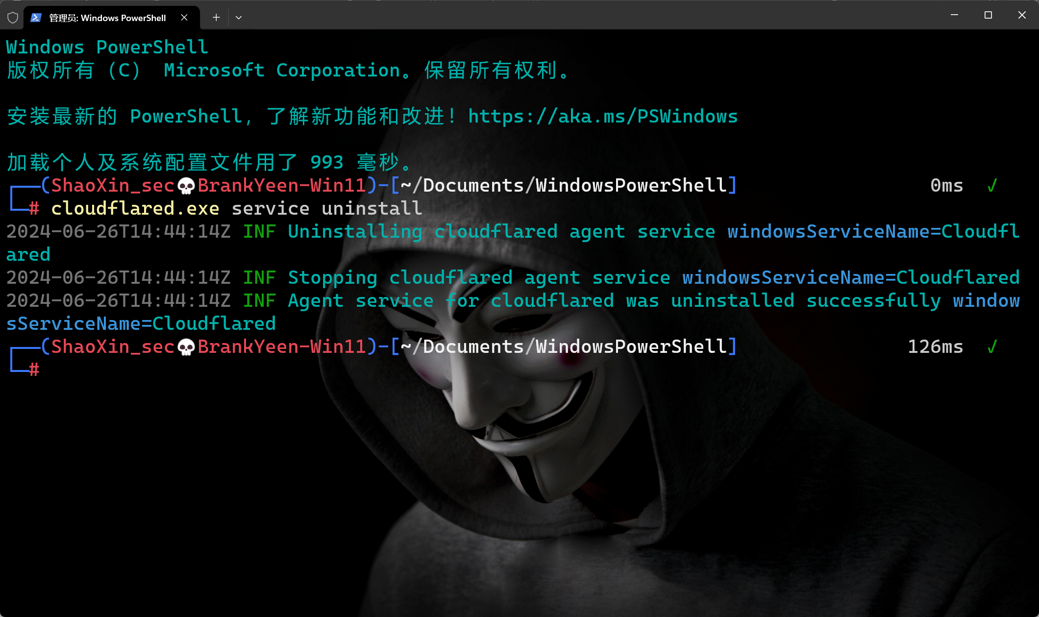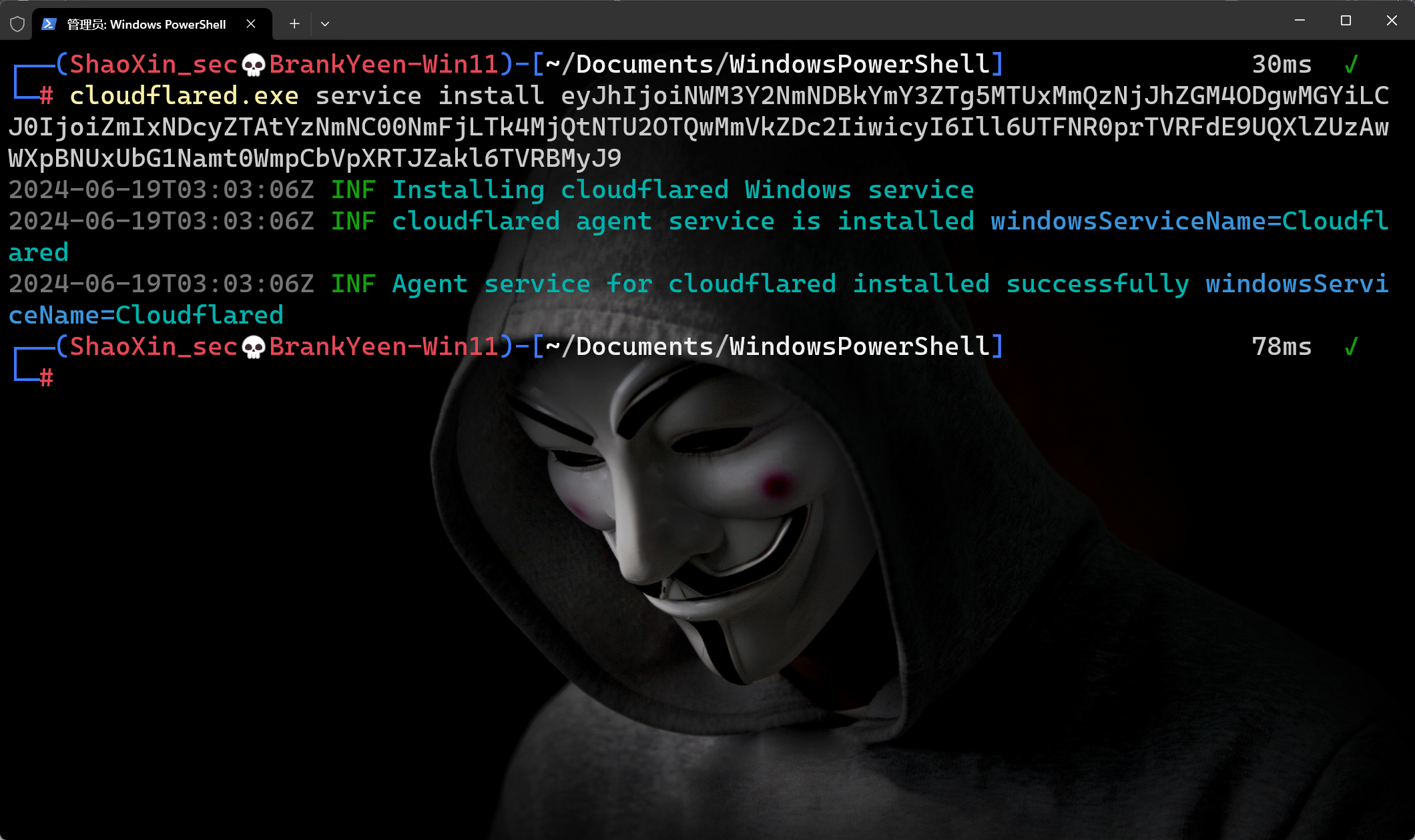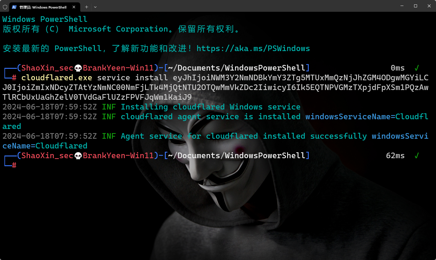 - 出现下面这个界面则说明你自己的电脑连接上了cloudflare服务器上面的隧道