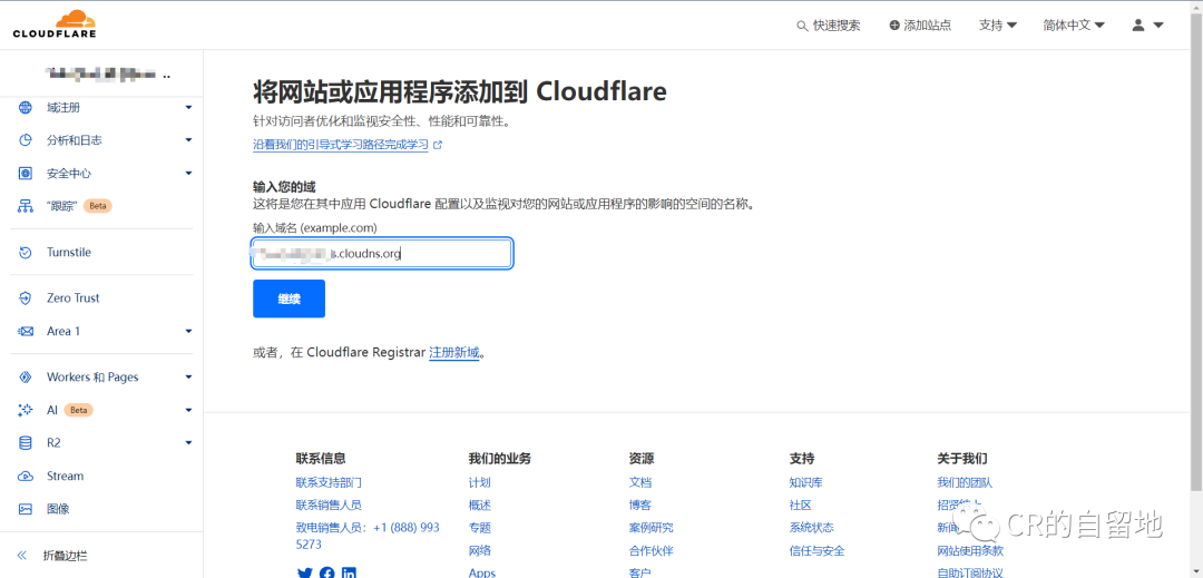 2.cloudflare点击添加站点