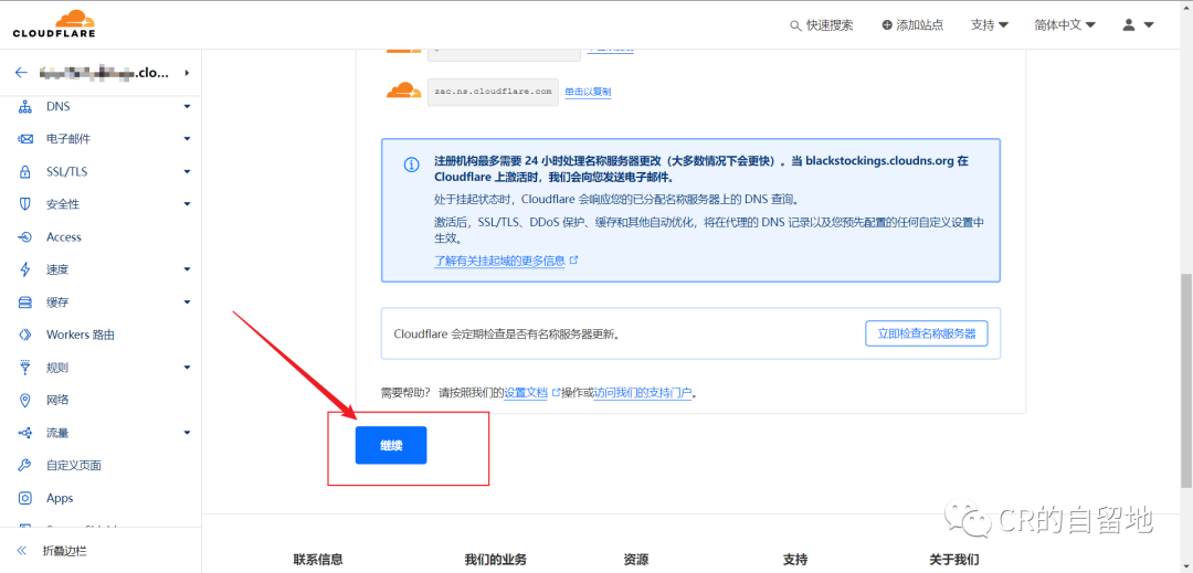 4.切换回cloud flare的三步骤,在第三步骤处下拉,选择继续
