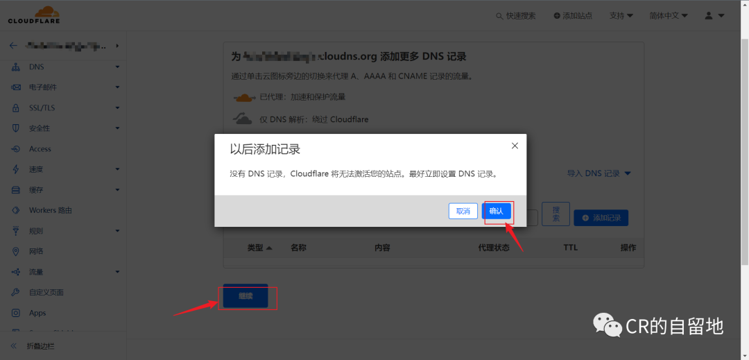 步骤二:扫描DNS记录,点击继续,再点击确认