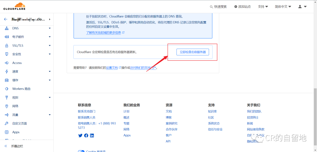 跳转页面后下拉,点击立即检查名称服务器