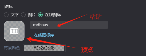 选择 在线图标,打开 在线图标库,搜索图标