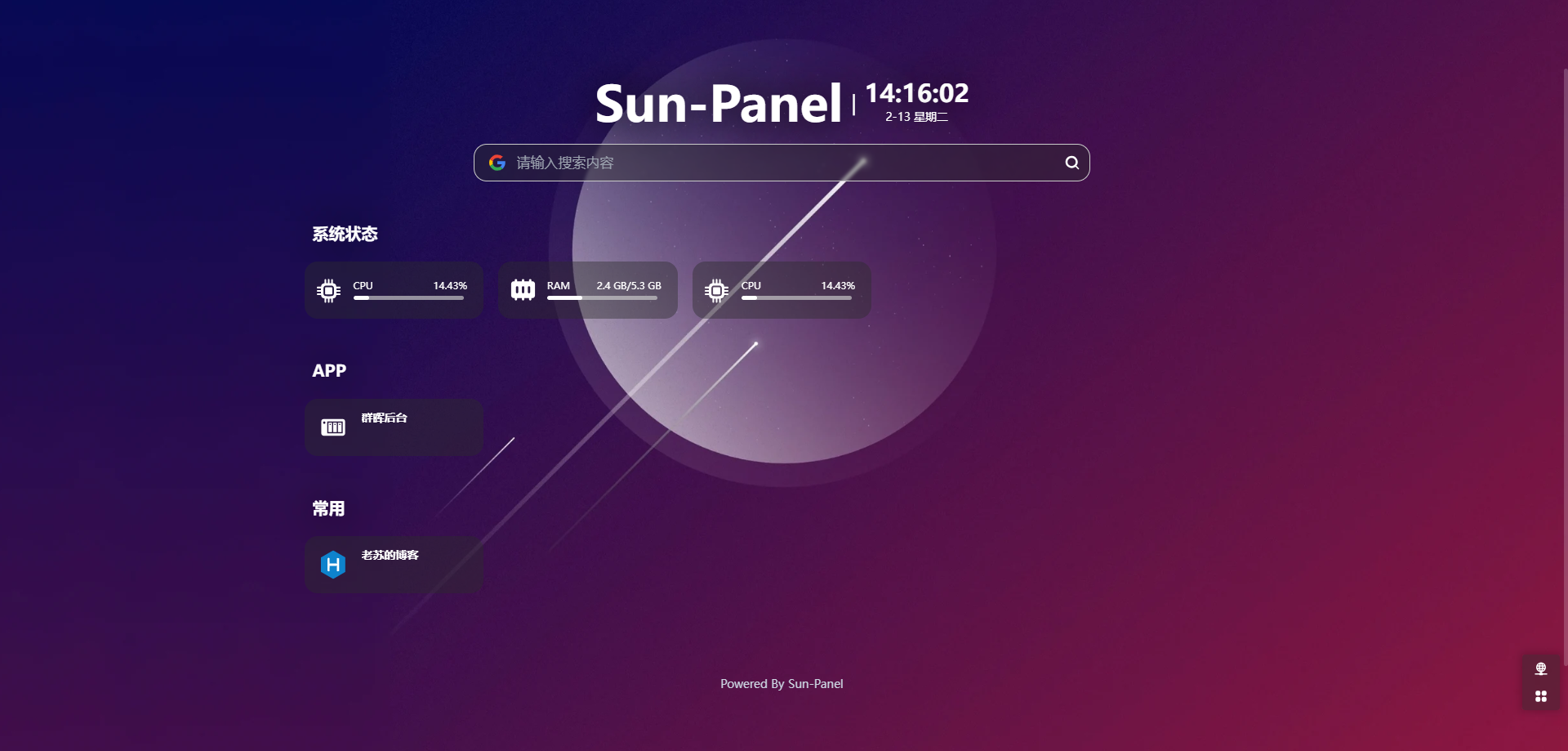 Sun-Panel是一个服务器、NAS导航面板、Homepage、浏览器首页。