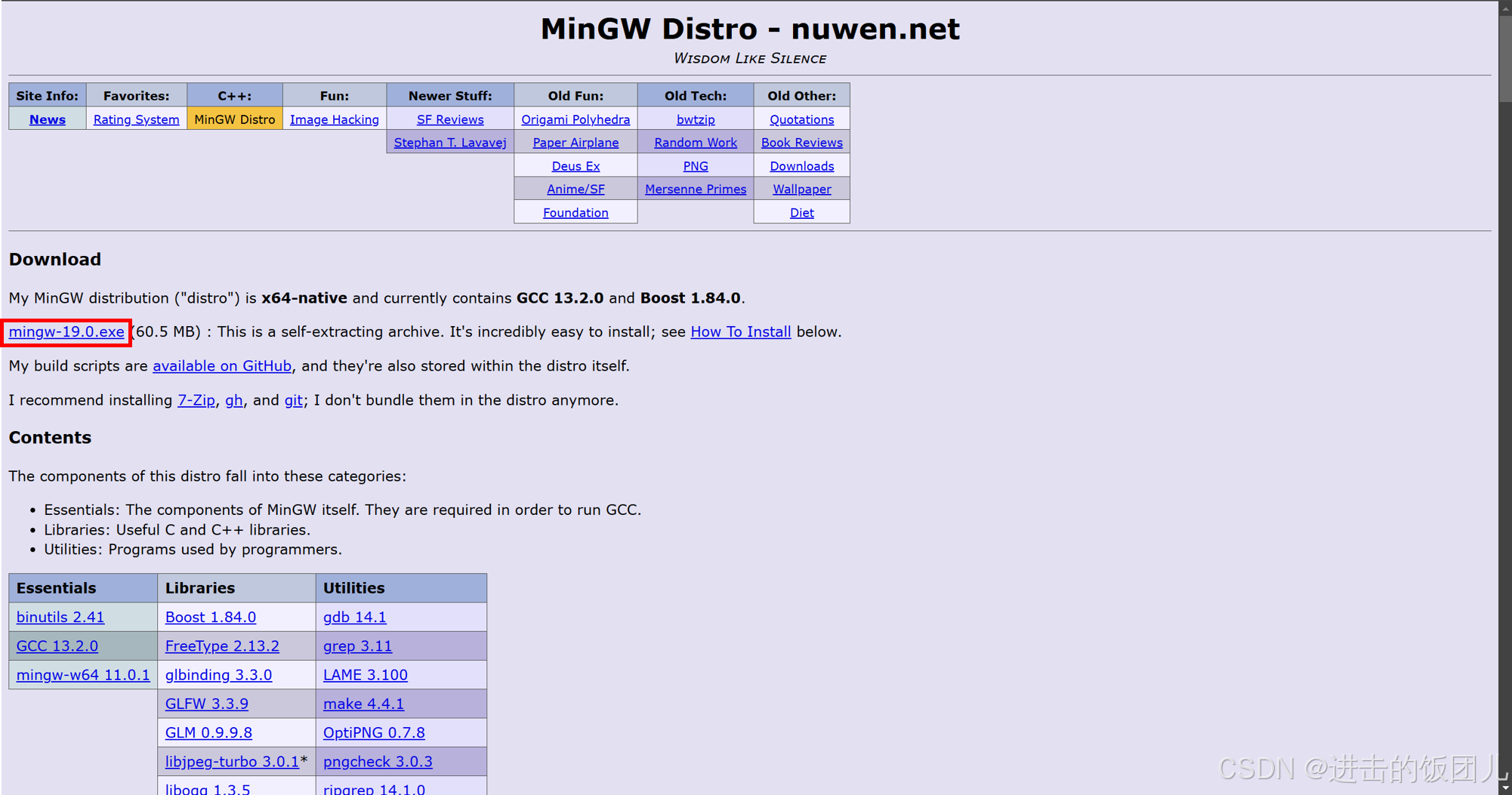 MinGW的下载地址:MinGW Distro - nuwen.net