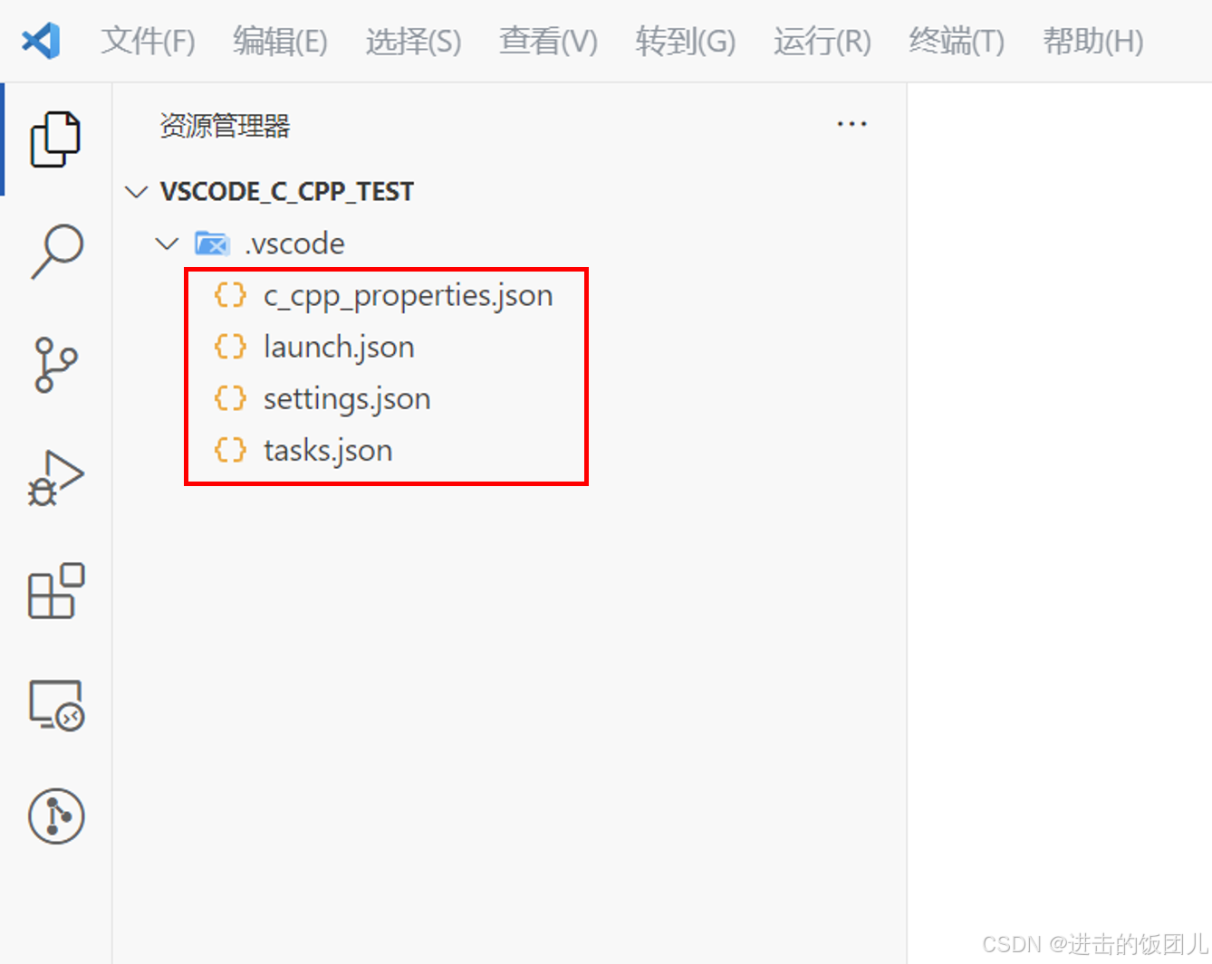 选中新建的.vscode文件夹 ,点击新建文件按钮。在.vscode文件夹下创建四个文件,文件名如下: