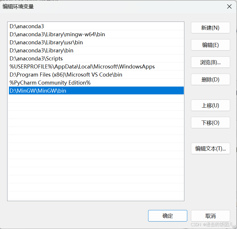 依次点击三次确定后,至此MinGW的环境变量配置完毕。